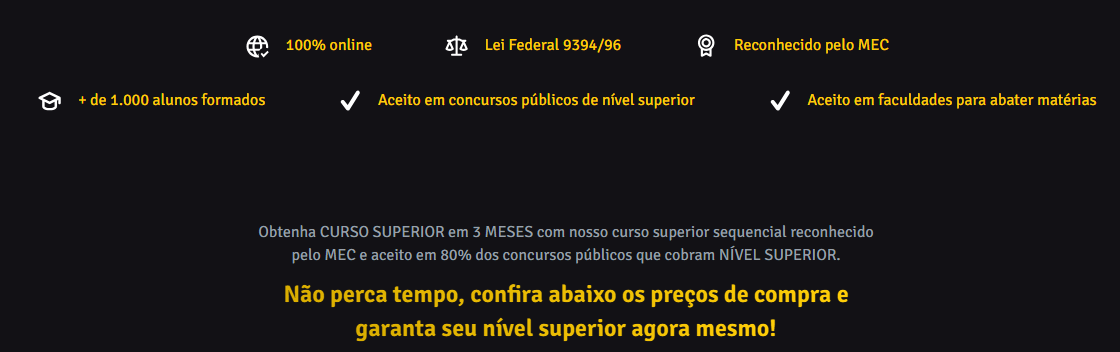 Ou seja, se QUALQUER Concurso Público exigir somente CURSO SUPERIOR sem falar GRADUAÇÃO ou DIPLOMA o curso superior SEQUENCIAL será aceito.
