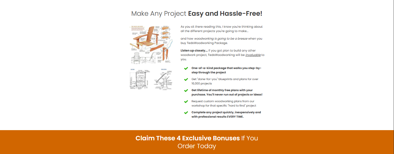 TedsWoodworking makes it easy to complete workshop, furniture, and LOTS of other projects… no matter whether you’re just starting out or you have years of experience!