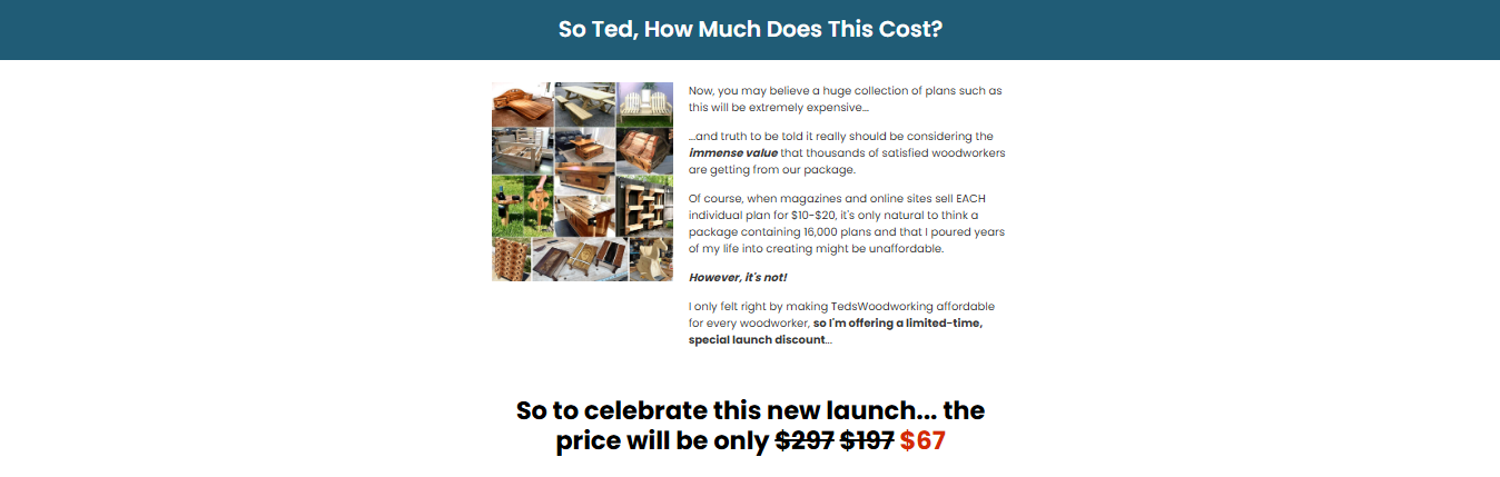 But in TedsWoodworking, you’ll get proven strategies for completing your costs for a fraction of what most retailers charge!